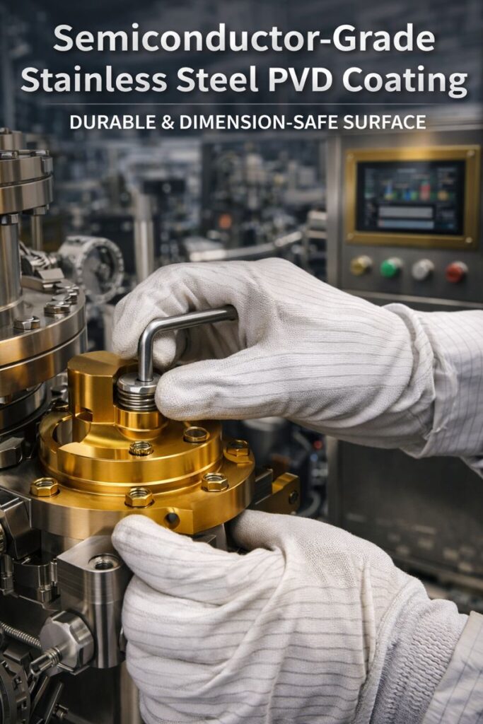 #PVDcoating #PhysicalVaporDeposition #SemiconductorGradePVD #VacuumCompatibleCoating #LowParticleGeneration #DimensionSafeCoating #ThinFilmCoating #StainlessSteelPVD #SUS304PVD #SUS316LPVD #PrecisionStainlessSteel #PVDCoatedStainlessSteel #TiNCoating #CrNCoating #ZrNCoating #DLCCoating #AlTiNCoating #MultiLayerPVD #SemiconductorEquipmentComponents #VacuumChamberParts #WaferHandlingComponents #CleanroomCompatible #LowOutgassing #ArcIonPlating #MagnetronSputtering #WearResistantCoating #HighHardnessCoating #LowFrictionSurface #CoatingThickness1to5um #ISO26443 #LotTraceability #SemiconductorOEM #PVDCoatingSupplier #CNCMachiningAndPVD